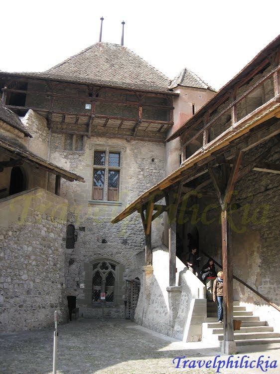 Also known as Château de Chillon in French, this enchanting medieval castle is set on a rocky spur on the eastern shore of Lake Geneva (left photo below). Chillon Castle (西庸堡) is one of Switzerland's most evocative sights with the magnificent mountains in the background. Built for the Dukes of Savoy, its origins probably go back to 11th century but its present appearance dates from the 13th century (right photo below). In 1536, the castle was captured by the Bernese, and from then until 1798 it was the seat of the region's Bernese bailiffs.