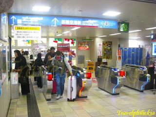 - It is convenient that this airport is connected to a monorail system, known as Yui Rail. The 'Naha Airport Station' (那霸空港駅) is just located opposite the Domestic Terminal (left photo below). Gantries in this station are designed broad enough for passengers with big luggage to pass through (right photo below).